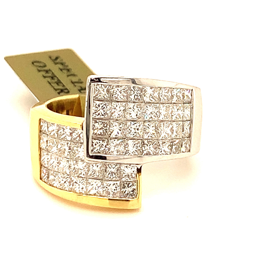 Indulge in the opulence of our 14kt two-tone gold diamond ring, adorned with 3.36cts tw of stunning princess cut diamonds.